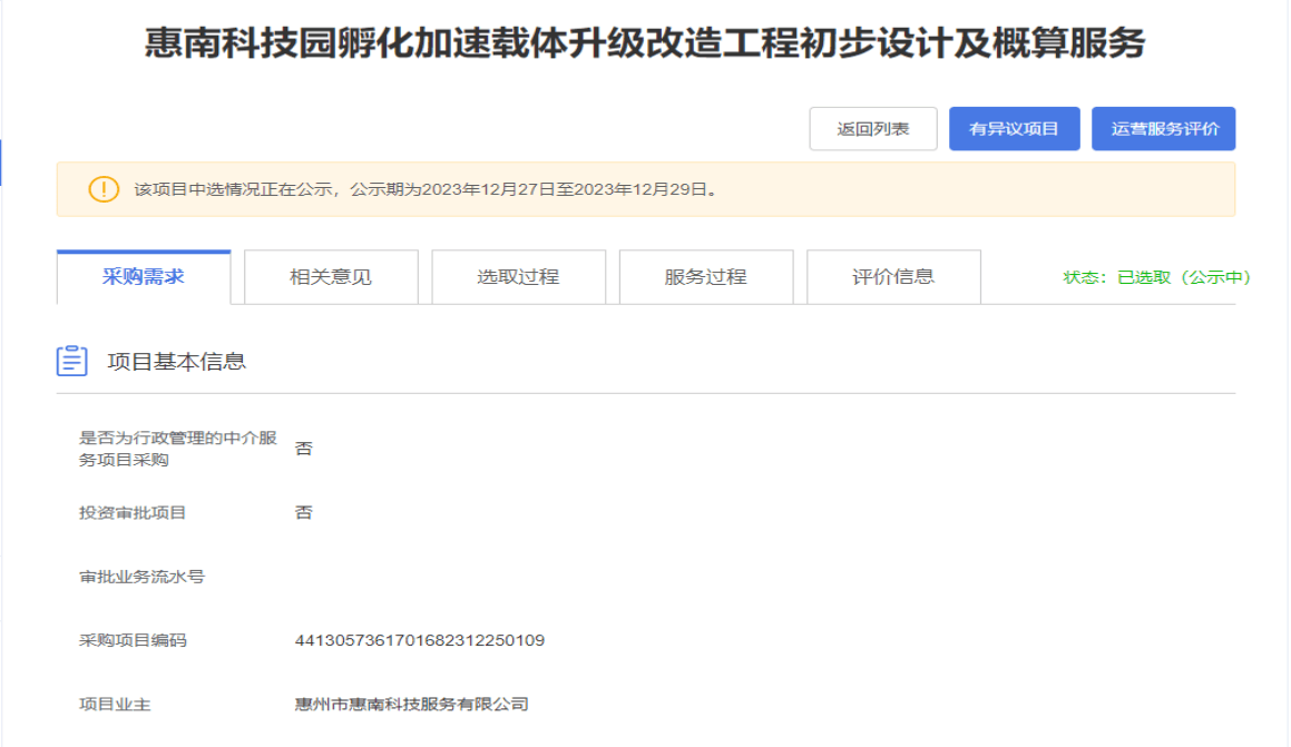 【招標公示】惠南科技園孵化加速載體升級改造工程初步設計及概算服務