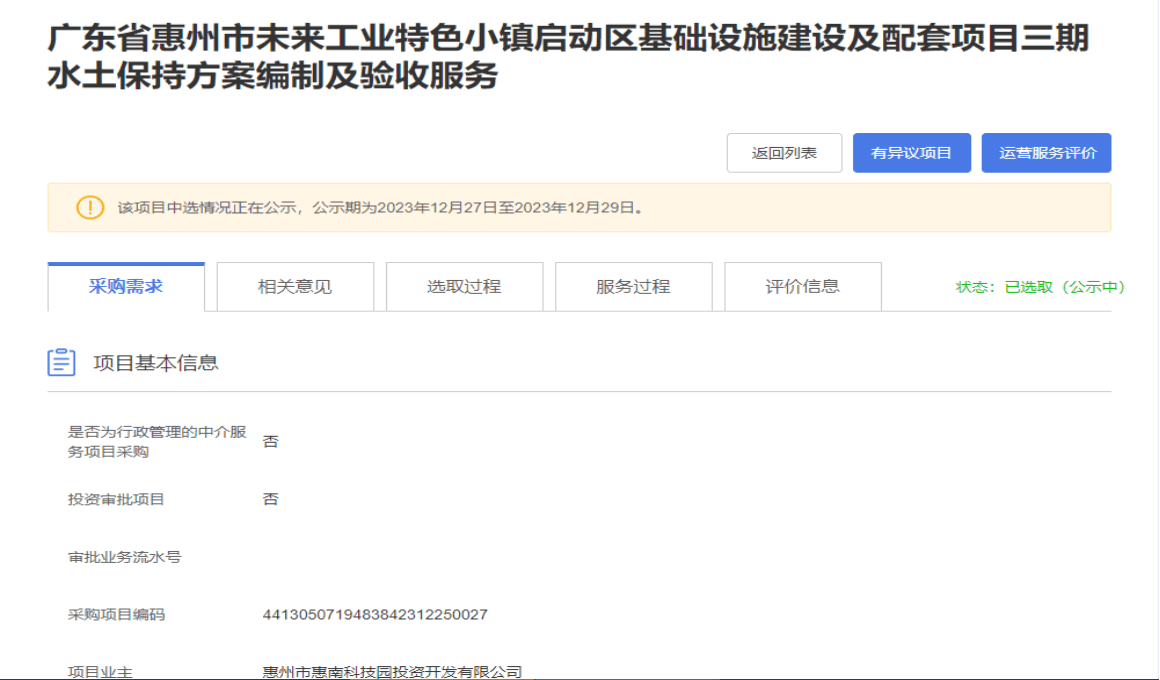 【招標公示】廣東省惠州市未來工業(yè)特色小鎮(zhèn)啟動區(qū)基礎設施建設及配套項目三期水土保持方案編制及驗收服務
