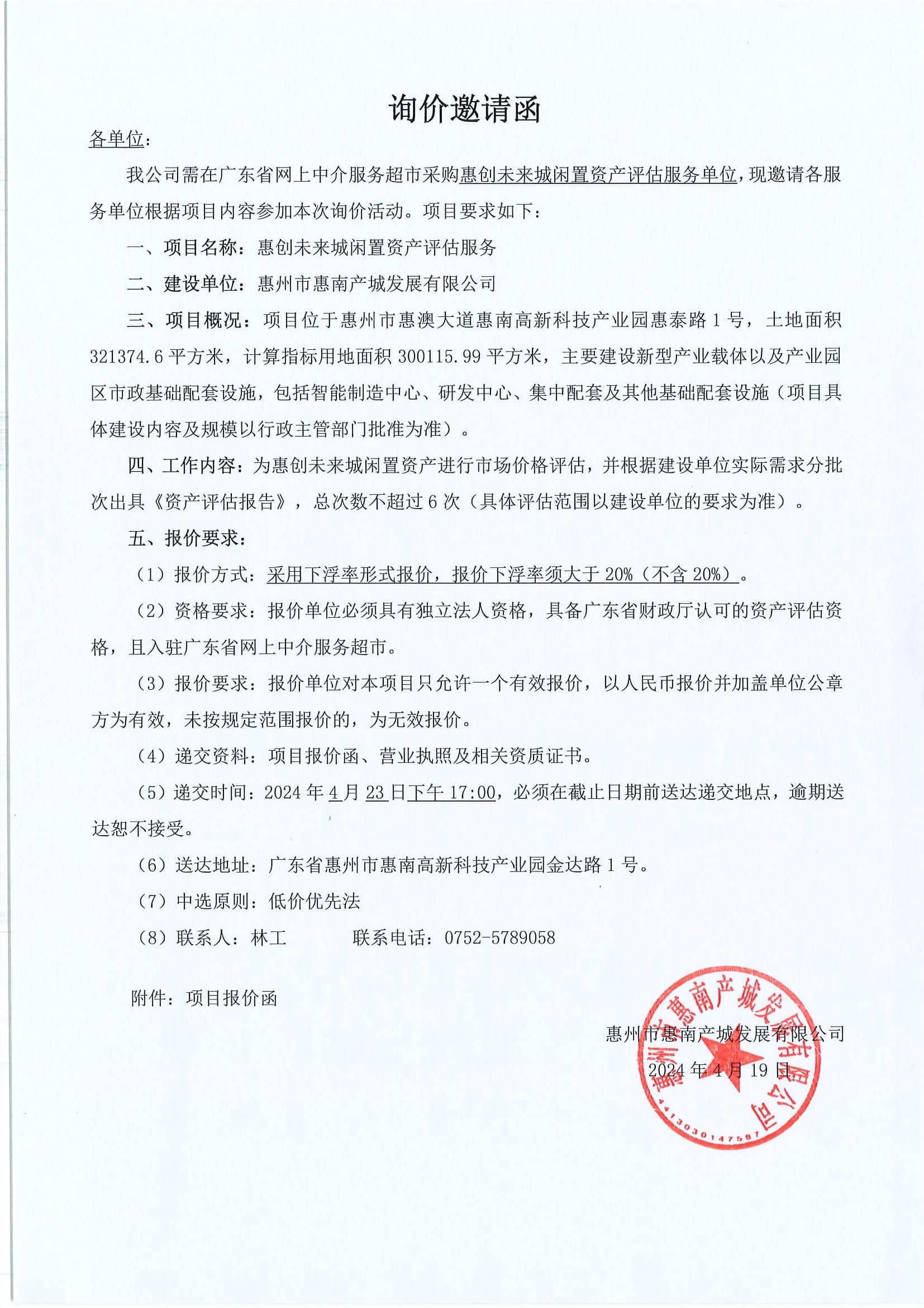 惠創(chuàng)未來城閑置資產(chǎn)評估服務(wù)詢價邀請函