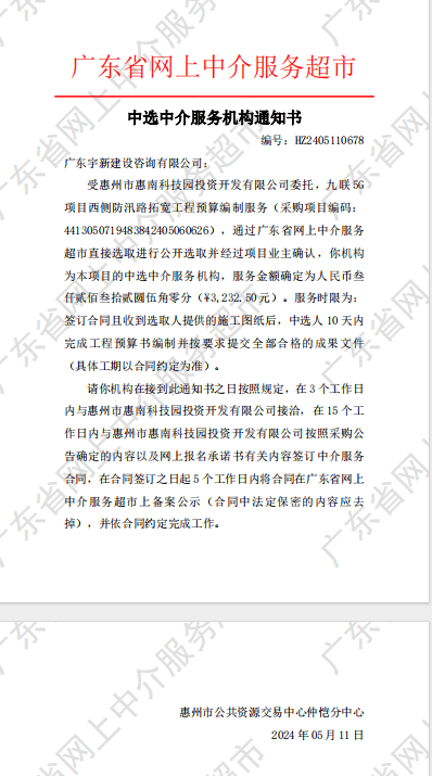 【中選公示】九聯(lián)5G項(xiàng)目西側(cè)防汛路拓寬工程預(yù)算編制服務(wù)
