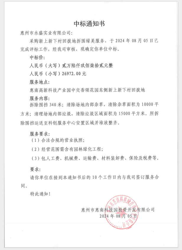 【中標(biāo)通知】采購新上新下村回?fù)艿夭饑G美服務(wù)
