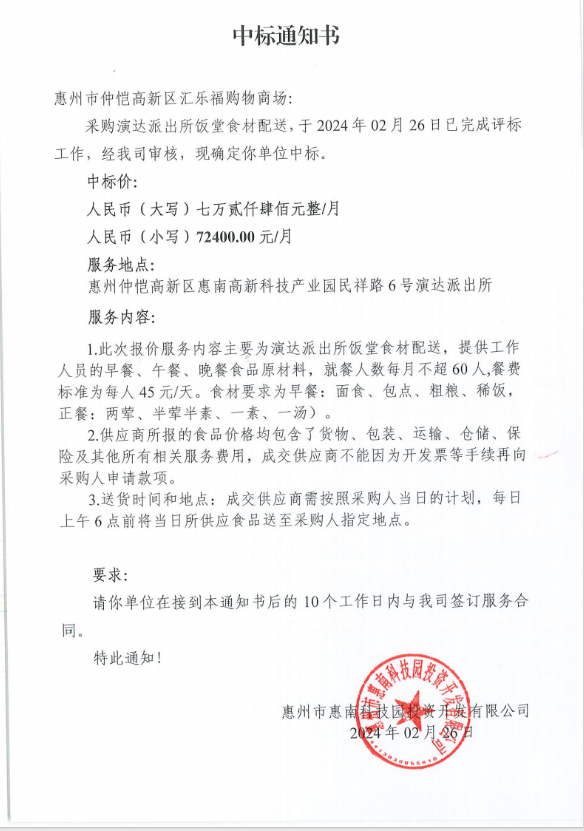 【中標(biāo)通知】演達(dá)派出所飯?zhí)檬巢呐渌?/h4>