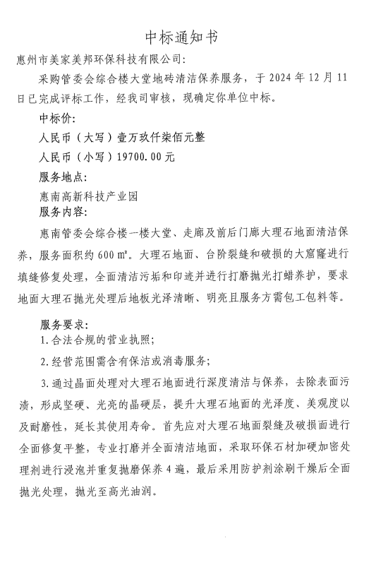【中標通知】采購管委會綜合樓大堂地磚清潔保養(yǎng)服務