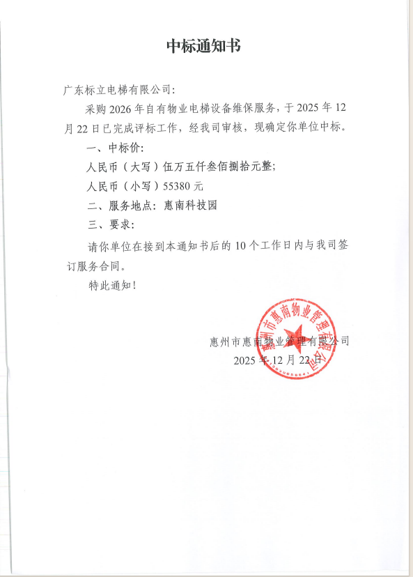 【中標(biāo)通知】采購2026年自有物業(yè)電梯設(shè)備維保服務(wù)